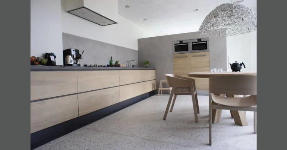 Microbeton wordt veel toegepast in woningen, winkels en utiliteitsbouw en heeft een krachtige, industriële uitstraling. Het is geen imitatie betonlook — het is echt cementgebonden materiaal.