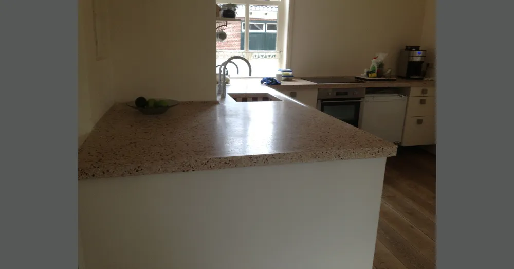 Omdat ieder terrazzo blad maatwerk is, maken wij altijd een offerte op basis van uw keuken en wensen. Zo weet u precies waar u aan toe bent.